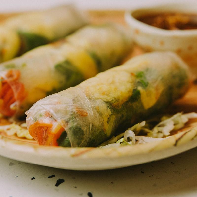 Rice paper wrap with tofu, vermicelli, mint, lettuce, cucumber, crispy stick, pickle, and avocado - 2 pieces