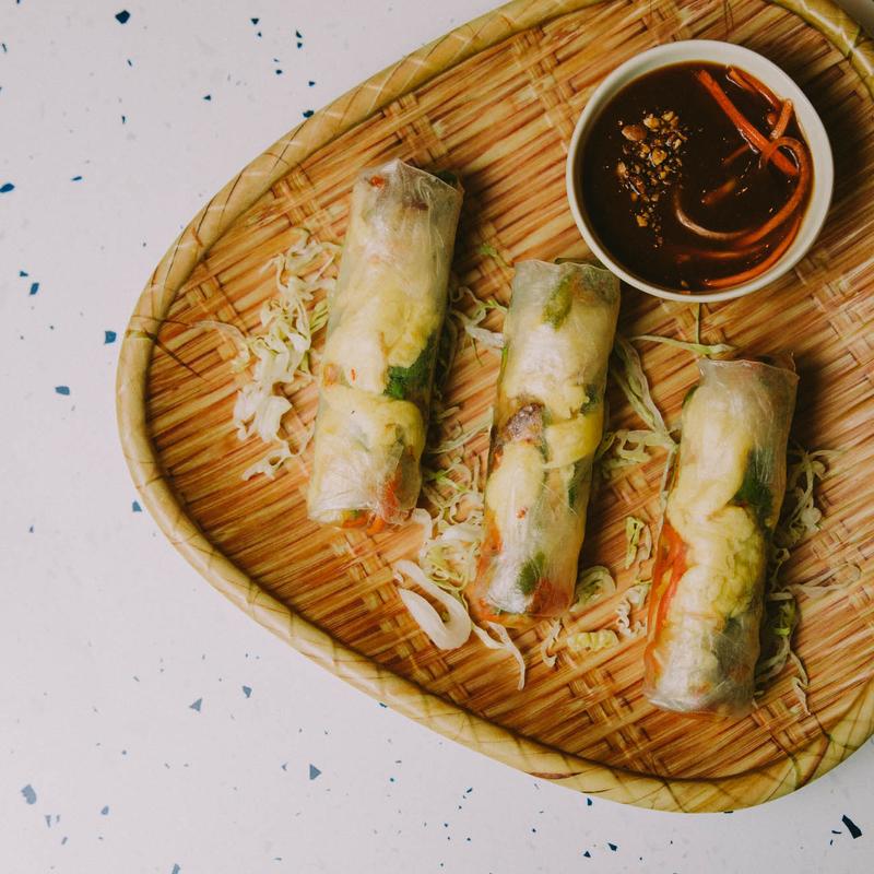 Rice paper wrap with stir-fried veggie with pork sausage, peanut, dried shrimp, basil, cilantro, shredded egg - 3 pieces
