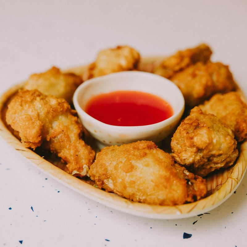 Shrimp wrap, street roll, cream cheese, fried tofu, chicken wings.