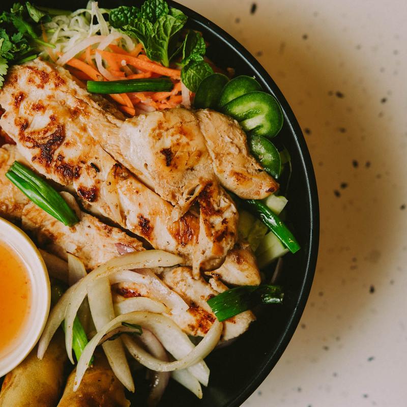Step 2: Protein (pick one)( come with egg roll): grilled pork, grilled beef, grilled chicken, grilled shrimp, fried/steam tofu.
